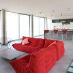 The house is divided into three components: the main house, the guest quarters, and a multi-purpose level. To maximize interior space and privacy of the main house, the entry porch acts as circulation to the guest rooms. Translucent panels and a partial glass floor allow daylight into the lower level.