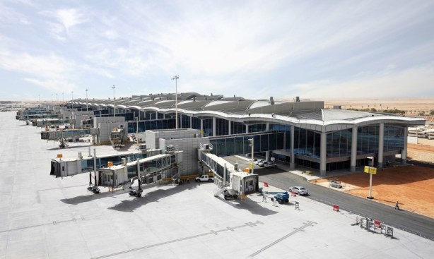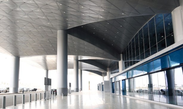 King Khaled International Airport is located 35 kilometers north of Riyadh city center. Before Terminal 5 became operational in 2016, the airport catered for 13 million domestic and international passengers per year with its existing 4 terminals and 4,200 m long two parallel runways. The 106,000sqm new terminal, located on a 400,000sqm site along the main approach road, was designed to serve either 7 wide-body or 16 narrow-body aircraft simultaneously, and has doubled the passenger capacity of the airport. The new development also included a new car park for 2400 cars, and other support facilities such as a fire station and an administrative complex.