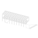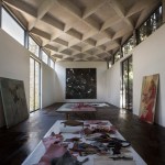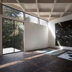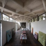 Monumental and respectful, the visible structure is placed in the thicket of the forest. Its lyrical relation with the environment encourages dialogue with the volume; a grid of columns and beams surrounding it act as a skeleton, but at the same time modulate and order space.