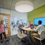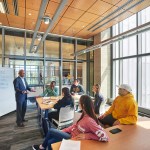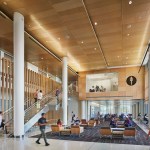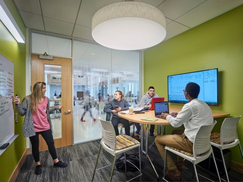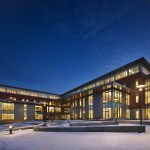 Learning environments are scaled for experiential learning, offering numerous breakout spaces with flexible, collaborative arrangements. Targeted to achieve LEED Silver, sustainability considerations emphasize energy conservation, locally sourced materials, and hydrology and ecology measures in relation to the campusâ wetland assets. The formal masonry building features an elliptical glass tower showcasing the manufacturing history of the region as depicted by glass artisansâat once a reflection of the past and the promise of the future.
