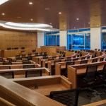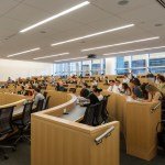 In addition to classrooms, lecture halls, and seminar and conference rooms, the 468,000-square-foot building features a skylit atrium, a moot and trial court facility, and a 90,000-volume law library. The Residence Hall includes five integrated learning center suites, a dance studio, entertainment rooms, and a dining hall.