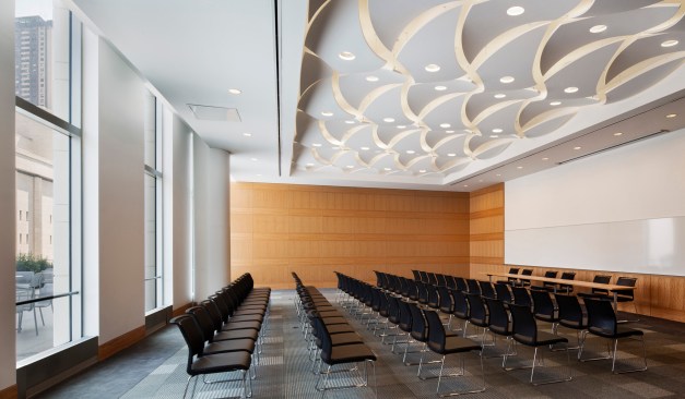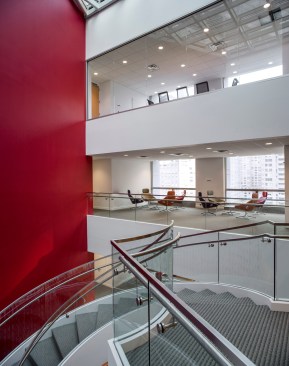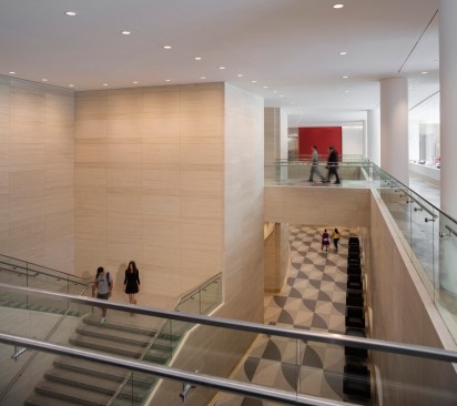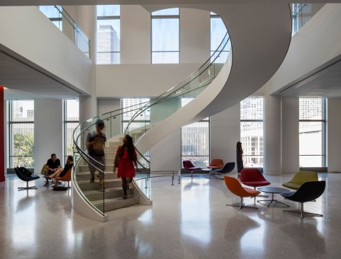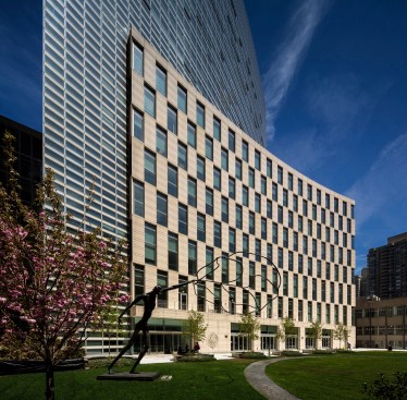 The 22-story building, clad in a curtain wall of architectural precast panels, metal, and glass, is shaped with a series of undulating arcs to make an engaging gesture toward Lincoln Center while providing a distinctive identity for the Law School. With an abundance of glass and light, the new building creates a collegial environment for students and faculty that welcomes the public and reflects the Law School’s tradition of civic responsibility.