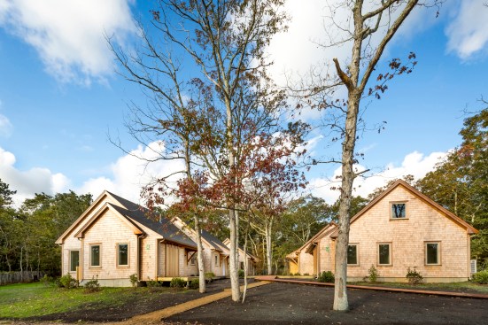 Scott's Grove housing is comprised of 9 affordable housing units with 18 bedrooms located within 4 clusters connected by a classic Vineyard boardwalk system. The housing style reflects the wood-shingled, Cape-style homes found prevalent throughout Martha's Vineyard. The scale of each complex is intentionally designed to evoke the idea of a neighborhood village comprised of modestly scaled residential homes typically found throughout the island. The design approach also focuses on the fundamental belief that housing should create healthy, pleasant, and sustainable homes for individuals and families at all levels of income. These homes afford a dignified and enriched experience for the residents while being sustainably designed, sensitive to the existing neighborhood, and environmentally sensitive impact on the island's landscape. All units have a mix of shared and private landscape areas on the site that revolve around Vineyard boardwalks. These raised walkways, not only minimizing the disruption of the existing natural landscape, serve as the connective paths from the parking areas to the duplex homes. The walkways expand and become common gathering outdoor rooms available to all. Within each duplex pair is a combination of one, two, and/or three-bedroom units, each based on a refined set of integrated space components linked together. This allows for a variation of composition that establishes individual identity for each occupant, but also repetition of construction that keeps cost down. The project has been designed to ENERGY STAR Tier 3 performance requirements.