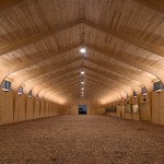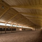 Sustainability is by design. The arena’s minimalist approach and smart use of materials means that the building only uses what is needed. The Southern Yellow Pine used in the glue-lam arches and other wood surfaces is FSC Chain of Custody Certified. The metal cladding on the roof and exterior walls is sourced with a high degree of recycled steel. A make-up air unit tempers the environment and is exhausted though the operable windows and arena doors minimizing the energy demands on the building. Energy efficient LED lighting provides the necessary illumination.