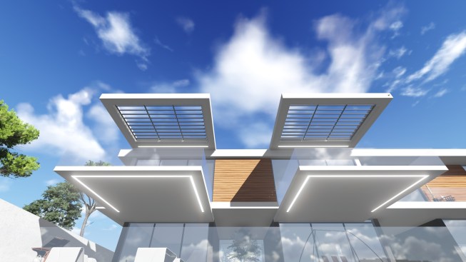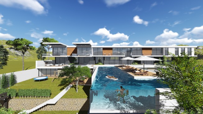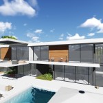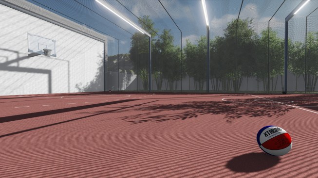 The pool breaks up the front area into the basketball court and the space for relaxation.