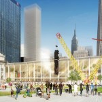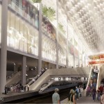 Station and its environs. SHoP’s plan imagines an expanded main hall of Penn Station as a
