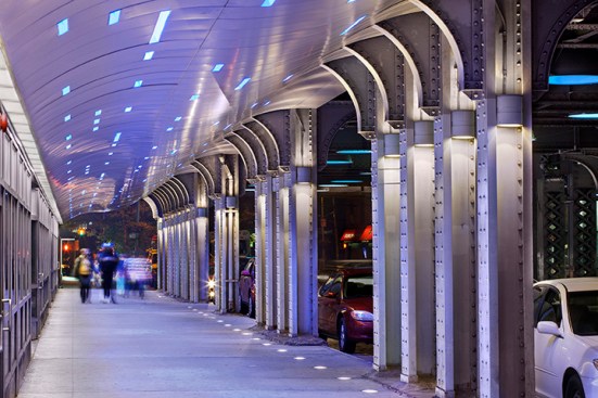 Part of the Jamaica Transportation Corporation’s program of Intermodal Enhancements for the Jamaica Transportation Center, this $12 million project transforms a series of loading docks under the LIRR viaduct underpass into 11,000 SF of retail shops and 13,000 SF of improved facilities for the Long Island Railroad employees.
