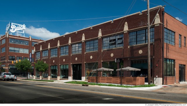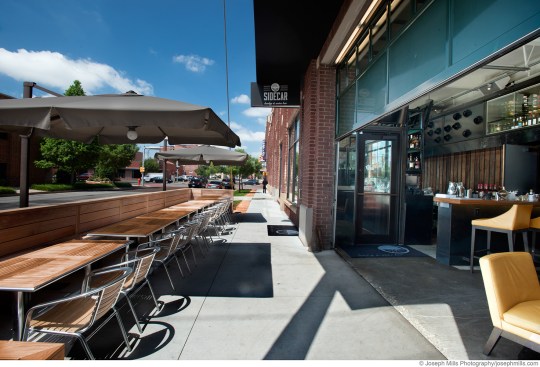 Sidecar is a popular Midtown neighborhood bar strategically inserted into 750 square feet of an off-alley corner of the historic Pontiac building. Although the bar has a front door, most of the year, the original overhead door is open, inviting patrons to belly up to the indoor bar while creating an open-air area with seating elevated from the adjacent street.