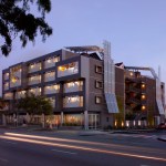 The design challenge of this project—the first all-affordable mixed-use development in West Hollywood and the first designed and completed according to the city’s new Green Building Ordinance—was to fit the desired 42 accessible units on a 13,000-square-foot site and within a 50-foot height limit. The design used minimal exterior setbacks and reversed the typical unit layout—locating the bedrooms along the interior building courtyard and the living areas on the street side—to capitalize on views and natural light.