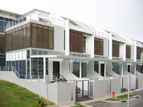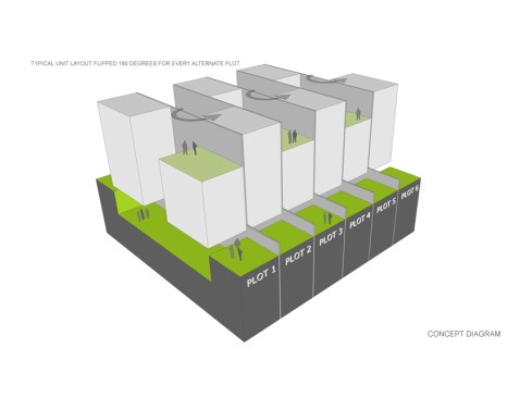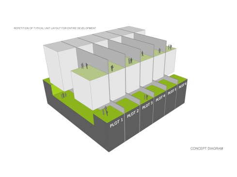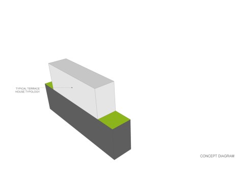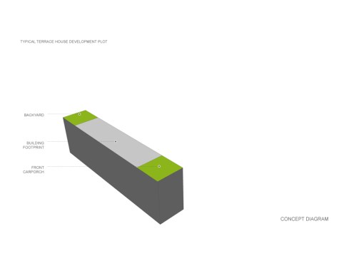 The conventional typology for partywall to partywall terrace house development often leaves small slither of inconsequential landscape spaces in the front car porch and backyard for each dwelling unit.