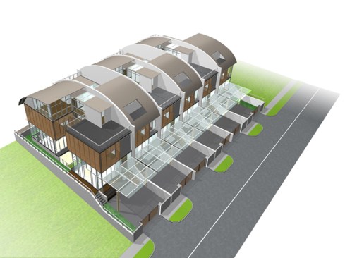 The economies of scale of repeating the same unit layout for the six houses development was given a twist by flipping every alternate house 180 degrees to create more variation in the elevation and roofscape. The result of which is also greater privacy for each individual roof terrace that would otherwise be overlooking the adjacent units.