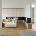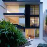 The material palette throughout the home includes concrete, wood, glass, and steel, all selected to help further the reach of the incoming daylight. A new lower level reconnects the main space to its rear yard, further linking the residents to the landscape. — Edward Keegan