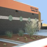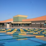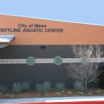 Skyline Aquatic Center was recently voted Best Public Pool by the East Valley Tribune! Open since 2011, Skyline Aquatic Center at Skyline High School provides year-round swimming competition and recreational venues for school events and the community at large with two pools. The recreational pool consists of a beach entry with large water slide, play accessories and attached warm up pool for competition events. The competition diving pool is configured for both 50 meter racing lanes and 25 yard mixed course lanes. Outdoor tiered bleachers offer seating for 1200 people and are protected from the Arizona sun with built-in shade canopies. The pool functions are supported by two adjacent one story buildings housing a bathhouse, lifeguard facilities, classroom and office space. While these buildings were required to be highly efficient and functional, the building forms are playful, drawing their inspiration from a modified wave effect that mimics water in building profile and layering of materials. The final design harmonizes with the existing school campus rather than merely duplicating the existing school buildings.