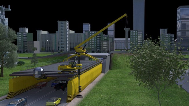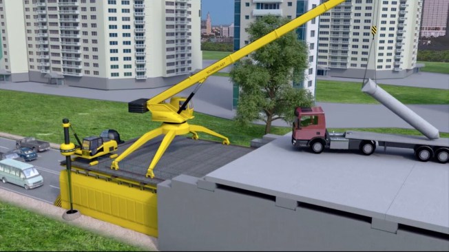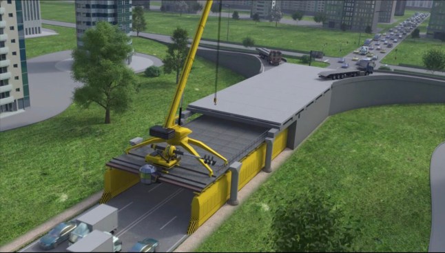 The MSPT is a large-scale modular machine approximately two hundred feet long and fifty feet wide that is installed above a functioning highway. The MSPT is part of a set of machinery constituting the unit of rapid assembly SKYTUNNELS which simultaneously ensures normal traffic flow and safety below the construction site.