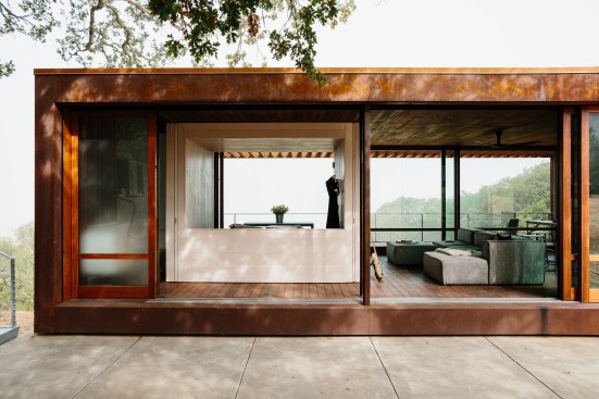 The Sonoma WeeHouse is, in fact, not one but two houses—one main house and one guest house—on a hillside site in Santa Rosa, Calif., just north and west of the vineyard-rich region that gave it its name. These small, impeccably detailed, minimalist, weathering steel-clad boxes were designed by St. Paul, Minn.–based firm Alchemy Architects for a client that knows a thing or two about fine-detailing and minimalism: Apple’s senior design director of real estate and development, himself an architect who collaborated on the design.