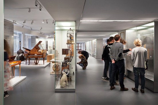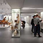 The exhibition design is build up around the guest’s physical movement through musical history. The design alternates between glass showcases making the instruments seemingly float in the air and open tableaus showing larger instruments.