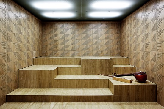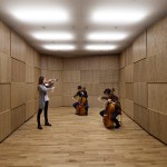 ’The Sonorous Museum’ is comprised of four sound regulated studios, acoustically adapted to a specific instrumental group: strings, brass, percussion and mixed instruments. The four spaces are designed as interactive classrooms in order to provide visiting school classes with a hands-on experience of the classical music instruments and their sound specter.