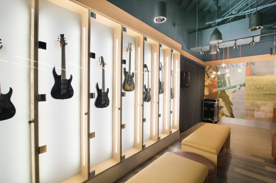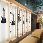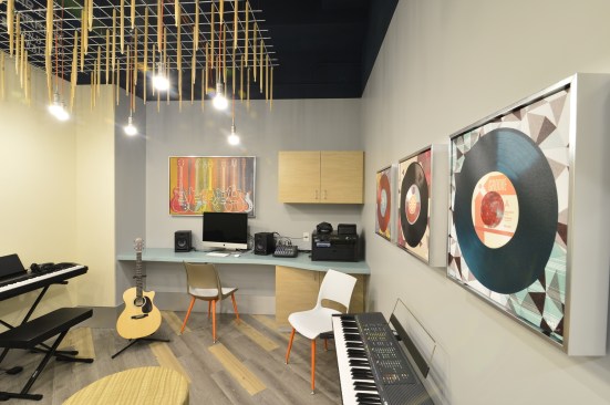 Located in Cardon County Children’s Hospital in Mesa, Arizona, this is the third Sophie’s Place built inside a children’s hospital in the U.S. The design is relaxed, happy, and comforting while the selected materials are durable enough to meet the maintenance needs of a health care facility. The space includes state-of-the-art space for music therapists to offer group and private music therapy sessions. The design also includes a recording studio, listening station, and practice room while cheerful colors and comfortable mobile seating for individuals or groups were incorporated along with displays of available instruments and recording equipment.