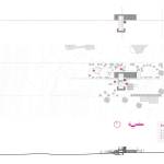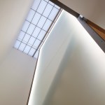 Three primary horizontal protective volumes are then placed, two on the ground (of porcelain), one bridging overhead (of wood). The resultant void becomes the fourth, most public volume.