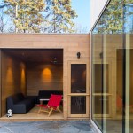 The geometric forms of this house generate places to withdraw, while still giving the homeowners views of a nearby towering oak and of one of Minneapolis’ numerous lakes. Local architect Charlie Lazor of Lazor Office envisioned the custom home as a stack of blocks, and played with direction and opacity on each to produce open and enclosed interior spaces. Pushing and pulling the blocks yielded various protected exterior areas, including a balcony facing the site’s only lake view. Other placements of the stacked spaces are equally strategic: The ground-level block stands parallel to the street and is mostly solid in form. It encompasses the garage, a guest suite/accessory dwelling unit, utilities, and a dog shower. Taking advantage of a sloped lot, the main level sits above the street but is level with the backyard. The elevation change allows for abundant glass on this level without forgoing privacy. Contrasting the hard edges of the rectangular exterior, soft curves finished in white oak grace interior living spaces. Corrugated steel wraps the top floor with a long slot window that slices through the front of the house. The master suite runs the length of this side of the house, and is separated from two secondary bedrooms by a double-height living space. A TV lounge area overlooking the backyard and the public areas also serves as a bridge between the bedroom wings. — S.D.H.