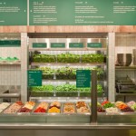 Sweetgreen is a fast casual chain restaurant. Always committed to the environment, both CORE and Greens Restaurant Group, looked for ways to reuse materials, reduce chemicals, and reduce electricity use. Maintaining the same clean palette and simple lines of the original location, the new locations use salvaged hickory for the walls and millwork reclaimed from local barns. Wood recycled from old bowling alleys is used for the tables and chairs. The new eco-eateries are substantially larger than the original Georgetown store, known for its 1,500 sf footprint. With the added space the new locations are able to seat 20. The design uses the graphics and colors from the Georgetown location but on a larger scale, made from sustainable paper and dye products, an oversized sweetgreen logo wall graphic is a signature design feature at all locations.