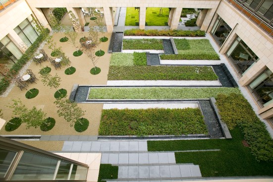 Capitalizing on the site’s natural features, BAR designed the complex so one enters the site at the top of the hill and drives through a forested grove of trees prior to entering the auto court. This gives the impression of a relaxed drive into a secluded resort, despite the fact that the project has an extremely high density.