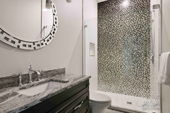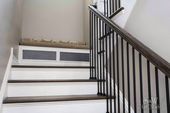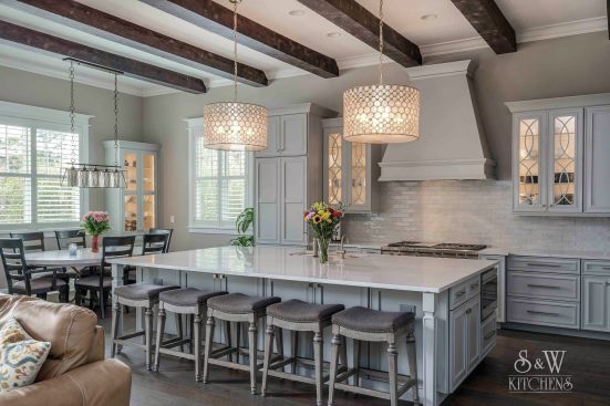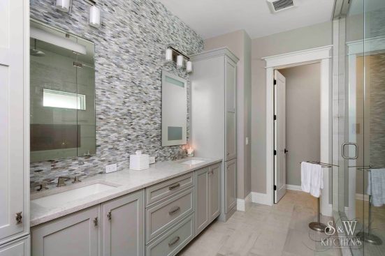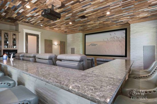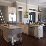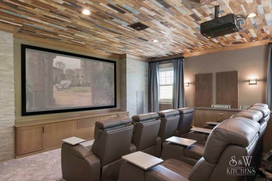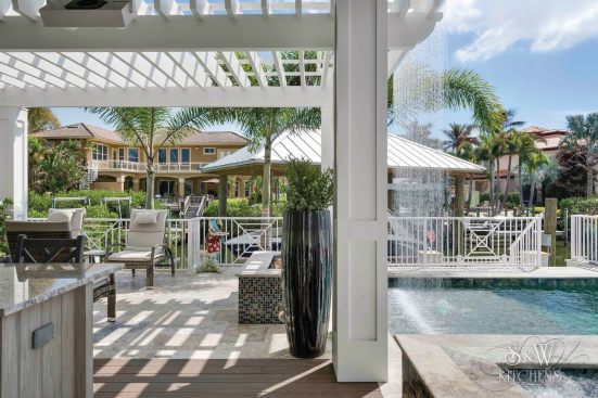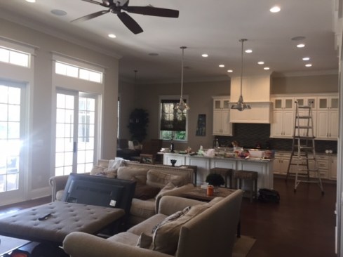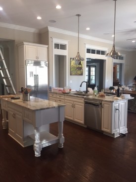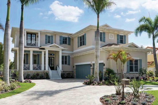 We were originally contacted by the client to look at the kitchen and master bath for a remodel. The home was only a two-to-three year old custom home and we were wondering what we could possibly remodel. The home owner walked us to the kitchen and said, “We bought the house because we liked the waterfront lot and we thought it looked well done. However, having lived in it, we feel a lot of things were done inexpensively; after using the spaces we also did not care for the layout”. Once we presented designs for the new spaces, they were so thrilled we discussed doing more rooms. This soon turned into remodeling the entire house inside and out. When asked what style they liked and he said, “All I want is to be wowed!” The project included a full remodel of all 9000 sq ft, inside and out. There was a complete redesign of the kitchen, pantry, mudroom, master bath, bath 4, theater, pool, dock area, driveway and outdoor kitchen. All other spaces were updated with modern finishes and fixtures. We updated the staircase, new flooring, paint, lighting, and fans throughout. The biggest challenge was a load bearing point in the kitchen area where we removed a powder bath, but with a little ingenuity and slight alteration on the tall cabinet and coffee bar we were able to create the same look by adding a return wall. Pantry/mudroom: these two were a challenge because they were originally two separate spaces and the first design we had already ordered custom cabinetry for were based on the separate spaces. With the clients question “do you think we could make this one room?” we saw yet another chance to wow them. We sat down and drew the new single room, then instead of wasting all the new custom cabinets ordered, we worked out a plan to redesign using every piece we could and we only ended up needing one more base and a few finished panels. Redesigning the driveway brought along its own challenges as well. The street has tight access, water lines, etc. We were able to come up with a curved driveway that fit more vehicles but also provided easy access to get in and out. The home sits right on a curve, so this helped them be able to pull out onto the street from two access points. It also dressed up the front of the house by adding more curb appeal with the pavers and landscaping. In the master bath, the client wanted a steam shower and second toilet. Moving the shower toward the existing water closet made it center stage and created space for the second toilet. In the kitchen, the triangle was over nine feet! We relocated the refrigerator and sink nearer the range. We replaced the mid-range appliances with high-end counterparts. They now have a coffee station equipped with a sink and refrigerator drawers. The new pantry turned into a full pantry, mudroom, pet center and small laundry to service the downstairs bedroom and pool areas. The home theater had no personality. We lowered the ceiling and added reclaimed painted teak to give a relaxed, warm coastal vibe and added richer colors, plush carpet, acoustic panels, wall sconces and a full bar to truly create a world of its own. The wrap-around bar has phone charging stations, quartz counters for delicious snacking and cozy seating. The original pool sat at the ground level and it took two sets of stairs to get to it; the three different levels inhibited natural flow for entertaining. We reconfigured the pool itself by raising the level to meet with the lower deck where the original outdoor kitchen was. Then we began adding features: the firepit area under the pergola, which has a waterfall feature that drops into the new beach-access entrance to the pool. The firepit is mirrored by fire bowls on the opposite end of the pool. The outdoor kitchen was completely redesigned by removing a center column that prevented a good seating arrangement and adding a new island and the best outdoor appliances. The decking matched the interior wood flooring to create a continuous flow inside and out. We also installed a new dock, landscaping to include beautiful planters, AstroTurf yard and a putting green.