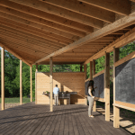 StudioMB collaborated with the Weissberg Foundation and the Washington Youth Garden at the National Arboretum to create this outdoor classroom as a gift to the kids in the National Capital region. The structure serves as a teaching tool illustrating how buildings work with the environment. With an inverted roof for rainwater capture, integrated rain cisterns, and natural materials, the structure sits lightly on the land and allows for a variety of teaching configurations.
