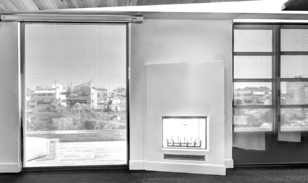 The widening of the openings, the arrangement of the frames and the two-sided fireplace connect the interior with the exterior. A place that highlights the close by natural water stream and the green of the surrounding area. With proximity views of mountain Hymettus, the outdoor living space provides the framework for meetings with the distinct feeling of freedom.