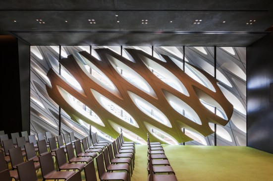 “Simultaneously sedate and spectacular, it fits the context of the visually exuberant arts buildings in this neighborhood. The types of space created are unusual but engaging