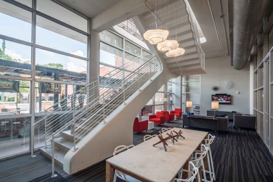 But in the 1990s, the property went vacant and in 2002 it was listed as one of Tennessee’s 10 most endangered historic properties. Local firm Looney Ricks Kiss (LRK) designed a $31 million renovation that transformed the former hotel into a residential building with 161 units, including studio, one- and two-bedroom apartments, and two- and three-bedroom townhomes for rent.
