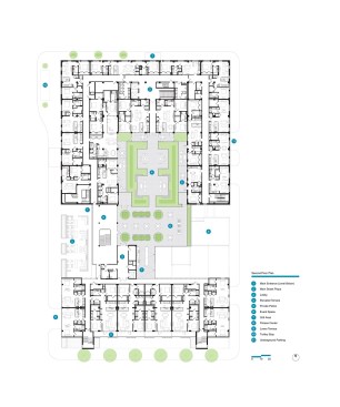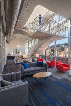 The design team argued to preserve the 1960s structure during the renovation, whose aesthetic contrasts with the original, but tells the story of the complex’s evolution through the decades. “The result is a differentiated design that respects the inherent character and time period of each building,” explains Tony Pellicciotti, the firm’s principal in charge. “From a market vantage point, differentiating the design appeals to a broader audience, while also expanding the definition of historic.”