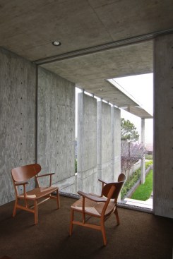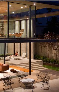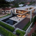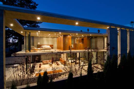 Due to the large expanses of operable glass, the thermal mass of the concrete, sun shading and the insulating effect of the pool the 6.5kw solar array on the roof accomplishes supplying nearly 100% of the homes required power.