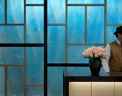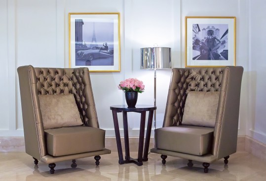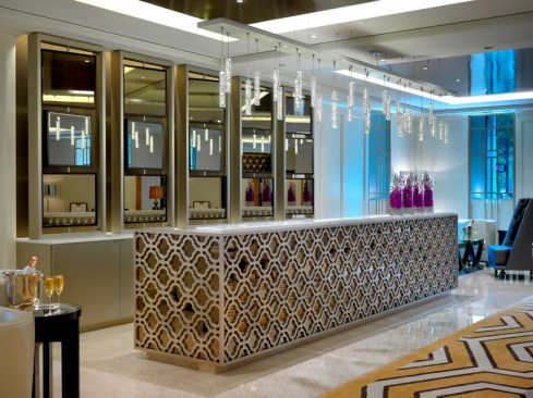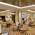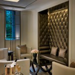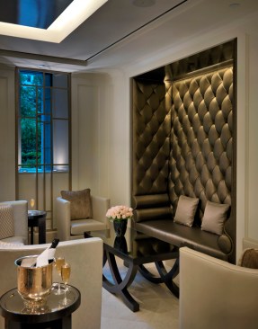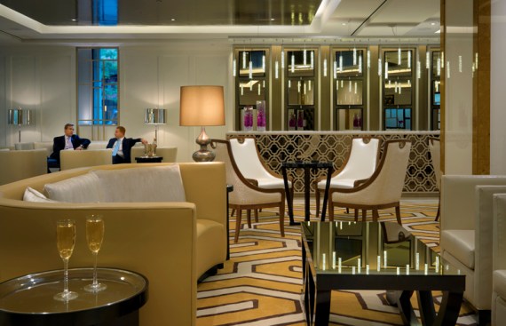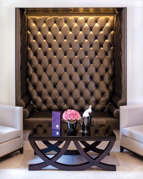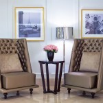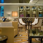 CBT’s design gives a nod to 1920s art deco and art nouveau through the use of metal finishes and period patterns implemented with contemporary finishes and furniture. The design creatively highlights the Langham brand throughout by keeping its traditional sophistication and balancing it with the introduction of modern allure. For example, the color palette of the ceiling features a reflective dark bronze that increases the height of the spaces while keeping with the warmth and tone of the Langham brand. The furniture selection introduces wing back chairs with unexpected fabrics.