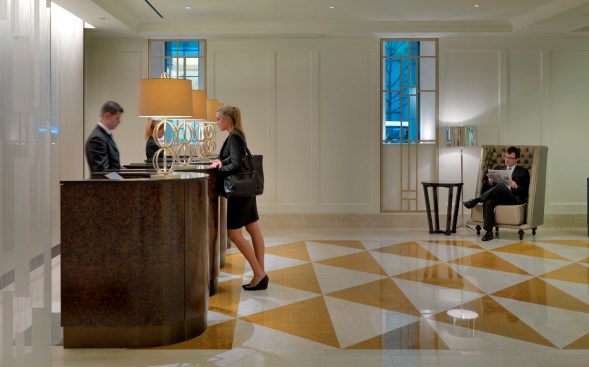 CBT recently completed a master plan for the entire hotel and has recently completed design for Phase I which includes a updated lobby. The design for the 11,000 SF lobby transforms the Langham entry experience with the creation of multiple unique spacial experiences on the ground floor including a new concierge-focused entryway, four individual reception pods, and a world class champagne bar and lounge.