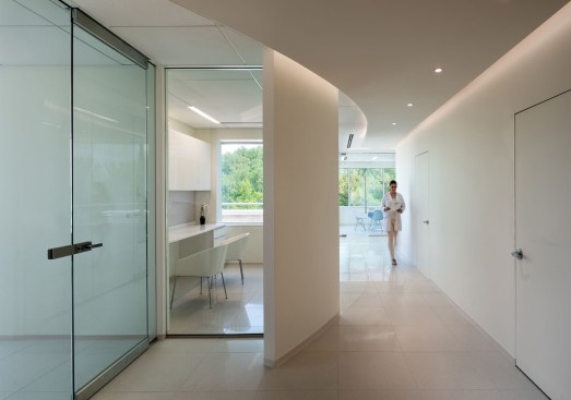 Sculptural partitions foster openness and a connection between patients and working clinicians. By strategically glazing the interior with floor to ceiling glass, patients were further provided natural light and exterior views from all corridors. A break room was located contiguous to the outdoor terrace, allowing staff additional opportunity to relax and recharge.