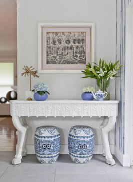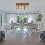 This ongoing project in the Morningside neighborhood of Miami has a personal connection to the designers – they live next door! The 2,800 sq ft house has three bedrooms and 3.5 bathrooms and has had the family room, dining room, master bedroom and closet, kitchen and backyard completed in the last year. The couple is big in the marketing world and have a simple, clean style that Moniomi spiced up with a few bold pieces and patterns. The wife’s Chinese background influenced the dining room, using special pieces from her mother in the design, while her father’s love of koi fish influenced elements in the master bedroom.