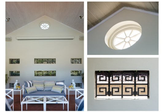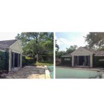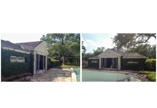 This Historic Pool House and grounds are a part of a larger Estate property in Terrell Hills Texas-part of central San Antonio. Both the Main House, Pool Cabana and backyard Pool/grounds were designed by Atlee B. Ayres-who’s original firm roots established many of the South Texas’ best known Architectural Firms. Found in a state of great disrepair, the original Cabana and Pool were almost considered unsalvageable. It was the keen interest of the current Owners of the property and their understanding of its historic significance that allowed the reconstruction of this wonderful landscape centerpiece. The owners had been working on the grounds and Main Home of the property for several years and the pool and cabana were next on the list of completion. During early design reviews, it was found that the pool and cabana had shifted over through the many years of expanding soils and neglect. Excavation to the original “bones” of the building and pool allowed the design team to find the spirit of the original landscape pavilion and pool structure. Careful attention to unique details for its original construction that included steel joists, new cast stone window sills, true divided light wood windows, integrated copper gutters hidden within the original slate roofing tile were studied and rebuilt to engage the original structure. The restoration gently pushed the Cabana into the 21st century by offering vaulted ceiling of the original structure and engaging the hidden oculus windows of the Lanai. The Lanai offers a shaded moment away from the hot Texas afternoons and a new full kitchenette and grille, which creates a great space for entertaining.