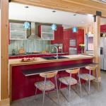 The jury loved the fun and affordability that infuses the Red Cottage and its open kitchen, which sports IKEA cabinets, countertops, and IKEA-brand appliances, too. The room also features glulam beams and exposed industrial hardware, natural-tone walls and ceilings, and a red-and-teal color scheme inspired by traditional Norwegian pottery.