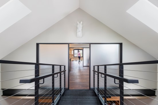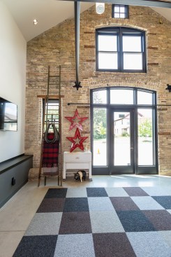 Built in 1888 by Anton Simon, the aptly named Simons Livery Barn once stabled horses for visitors to the Carver County court house for trials and other county business. Originally, the barn had a central isle flanked with bays on each side and with a lofted area for hay and grain storage. Almost a century later, the building housed a small a candy factory before the building was carved into a hodge-podge array of offices in the late 1980’s. By the time Neil and Sarah Amundson purchased the property in 2014, the roof was structurally unsound and the interior was in need of a complete gutting and renovation. The four brick walls and their stone foundation are all that remain of the original structure. The exterior of the building retains several significant architectural features fabricated from locally produced brick including a corbelled cornice, segmentally arched hoods above the windows and doors a semi-circular roof comb. First called "Chaska brick" in an 1894 Chaska Herald article, this distinctive brick is known for its unique "creamy" color, high clay content, and quality. Chaska brick remains closely tied to the history of the city it came from. Accordingly, the Simons Livery is on the National Historic Registry. Restoration of this historic structure was paramount to our clients’ desires and the renovation work is remarkably sensitive to the architectural character of the historic context of a building that would have been regarded as “utilitarian” in its day. It is an excellent example in all respects. Even the small high windows on the north elevation are reflective of the pattern of livestock stalls associated with the building’s historic usage. The U+B team went through several design iterations for the space, landed on a plan described as a “ship in the bottle.” The historic feel of the exterior belies the contemporary interior. In the spirit of the new owners, our design accentuates the iconic form of the structure while modernizing the interior. By lofting the front and back ends of the two-story space, the updated interior allows the occupants to appreciate the historic form and materials of the building’s unique shell while maintaining the integrity of the structure. Open space, a significant kitchen and contemporary detailing present a fresh interior that openly embraces the historic shell. While incorporating a color palette, textures, and materials that hint at its rustic past, the clean lines, metal, and glass of the building’s new interior are well suited to today’s demand for modern amenities. The building boasts hydronic in-floor radiant heat throughout that allows the polished concrete to keep bare feet warm and comfortable on cold days. Purchased for use as an event and presentation space. The building required sensitive interventions that would bring the space into 21st century standards. Our team was able to deliver a welcoming facility that has been embraced by the community and supports of our clients’ needs for an engaging entertainment and studio venue. “We hang out here. We’re still a little gaga,” said owner Sarah Amundson of the completed project. “It’s calming and peaceful.”