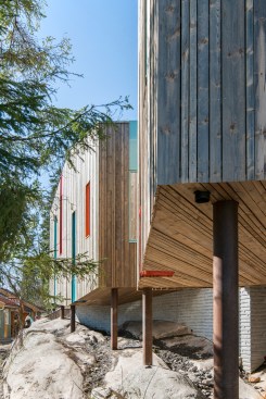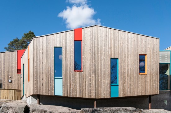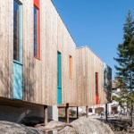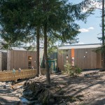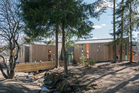 Fredrikstad Waldorf School’s newest addition, which will accommodate children from grades 2 – 4 and create a new premises for the school day care facility, was recently opened by Jon-Ivar Nygård, Mayor of Fredrikstad. Located on a picturesque south facing slope and surrounded by trees the new building, clad in Kebony, is situated on the boundary between the forest and schoolyard. To preserve the natural backdrop to the play area, the building is partly placed on stilts floating above the creek to maintain the natural rock formations on the site and the flow of the little stream through the grounds.