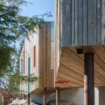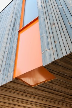 For the façade, raw materials such as concrete, wood and steel are used without modification to emphasize the materials’ inherent natural beauty. Kebony was chosen for the external wooden cladding to continue this natural aesthetic, but also because the subtle, dappled silver-grey patina complements and enhances the woodland setting. Kebony has strong environmental credentials in its own right, as a sustainable alternative to hardwood that reduces the demand for tropical deforestation. The patented technology enhances sustainable softwood by heating them under pressure with furfuryl alcohol, an agricultural byproduct, so that the softwoods permanently take on the attributes of tropical hardwood including high durability, hardness and dimensional stability.