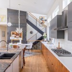 Assuring that this contemporary house sits comfortably within its context, a one-story form addresses the street. Behind this form, where the small site slopes dramatically down, a two-story form rises — inconspicuously from the street — above a basement level. Inside, a simple, open, black steel and wood staircase provides vertical circulation between the levels, along with an elevator – an age-in-place consideration.