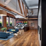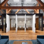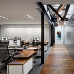 Tolleson, a nationally recognized branding and creative agency, a relocation to San Francisco’s Barbary Coast represents the third iteration of its studio evolution as well as partnership with Huntsman and Design Workshops. Formerly the showroom for the Amtico flooring company, this two-story warehouse embodied many of the original office’s rustic characteristics such as exposed brick walls and wood trusses, wood floors, and skylights. Coming from a 3,500 square foot space, Tolleson had the opportunity to configure its new office to better relate to how the firm currently works. This translated into a suite of spaces catering to client engagement, an expansion of the studio, and the addition of video and audio editing and photography studios. Many of the features of the original office come into play; the reception desk is made of hot rolled steel – a technique that defined the design direction of the first studio. Timber trusses and posts were bead-blasted to reflect the original redwood warmth and color. New steel beams form room edges and define a contrast with the original construction. Reclaimed wood from former barns clad side walls and extend up to a mezzanine level which was added as part of the building renovation. Rippled glass panels hark back to design elements of the first office and provide both transparency and privacy.