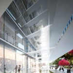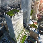 The decks also allow for an uninterrupted connection between the buildings. The parks in front of the two towers provide generous open spaces to the public. The stepped terrace design allows onlookers to enjoy events as they occur on the levels below, creating a truly multi-layered urban landscape of lush greenery and public space. The towers’ design enhances the overall identity of the urban precinct while simultaneously fulfilling the diversity of functional requirements. The façade design plays an important role in the office tower’s overall energy efficiency (the project aims to achieve a CASBEE Class ‘S’ rating); however, other green technologies like a cogeneration system, grey water recycling, high- performance glazing, rainwater harvesting, photovoltaic as well as high-efficiency lighting and mechanical equipment are critical in ensuring that the buildings are as green as possible.