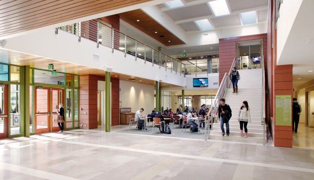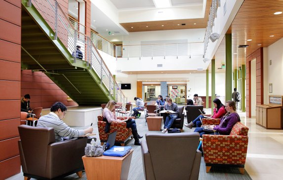 The Student Community Center (SCC) is the first step in the overall transformation of the Walker Hall neighborhood. The SCC serves as a bridge between the historic Quad/Shields Library and the Silo Complex, creating an active and lively pedestrian-oriented student service and community zone. The new SCC provides much needed academic support and community space for UC Davis students including activity, administration and support spaces for several student organizations; late-night study spaces; a media center; multi-purpose and meeting rooms; and a cafe.