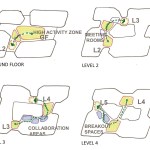 The new building is designed with the concept to support the spirit of community, collaboration, engagement and agility. Referenced to the traditional village planning in Indonesia, it has a ‘square’, ‘main roads’, and ‘streets’ to create a sense of community. The planning is focused on engaging group and individual work into zones to induce collaboration while maintaining privacy. The top four floors are office spaces with break-out areas; while the ground floor is dedicated to public and shared facilities. Surrounding the central, light-filled atrium that serves as a large event space are common facilities including a mosque, staff dining area, day care centre, fitness centre, beauty salon and multi-purpose hall.
