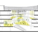 The indentations on the facade create indoor and outdoor green pockets. Each of the four building wings are connected by piazzas which are located where the building is indented. There are also outdoor landscaped decks and rooftop for staff and guests to enjoy.