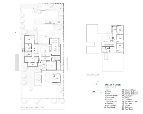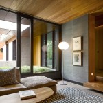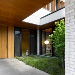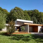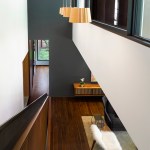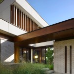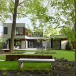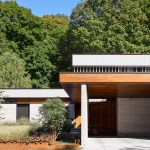 From the architects. Built for a family of five, this house in Toronto’s Hoggs Hollow neighbourhood occupies a deep lot on a reverse ravine, with a heavily forested slope rising steeply behind. superkül’s renovation and addition respects the legacy of the existing bungalow’s Mid-Century Modern heritage while establishing a deeper connection to site. Consequently, the existing motif of courtyards and enclosures has been amplified to focus attention and activity to particular zones of the house, and the smooth integration of interior and exterior spaces has been achieved. Landscape gestures break up the expanse of the lot to create layers of experience and intermediary zones of progression. Planted with shallow grasses, a Corten-enclosed forecourt softens and mediates the approach to the front door. To the right, a sheltered carport retained from the original house projects beyond the street-facing elevation, beckoning entry under the canopy of the elegantly flat-roofed enclosure. The ground-floor expansion respects the home’s previous footprint, with the bulk of the additional square footage manifesting in the partial second-floor addition, which is set back from the projecting carport in deference to the clean, spare lines of the existing structure. Material harmony is established on the exterior; the original white brick cladding was retained, complemented by concrete block, cement board, and marine-grade plywood stained a deep mahogany. On the interior, the spaces are open, fluid and well-lit in keeping with Modernist principles. The organizing device of the stair articulates the east-west spine of the house; the primary living areas are located at the rear to capitalize on views of the majestic trees and lushness of the rising ravine wall. Here, a sizeable deck constructed from hard-wearing ipe wood extends to envelop the garden landscape; it becomes an outdoor room unto itself, a three-sided open-air courtyard. A varied and textured material palette addresses the clients’ predilection for colour and contrast. As such, numerous compatible wood finishes were specified: walnut floors and teak and cherry millwork predominate, accented by dark steel plate in the fireplace surround and the stair-railing assembly. The study in material and tonal contrasts is most apparent in the den, which is impactful in its intimate and subdued ambiance. Light from the west-facing window wall makes the subtleties of the room perceptible, highlighting the delicate textures and striations of the dark grey wallpaper and the pleasing grain of the cherrywood ceiling. The project establishes a precedent for residential design in its sensitive approach and recognition of the particular contextual conditions of the physical landscape and historical Mid-Century Modern significance – in contrast to the proliferation of faux chateaux populating many residential enclaves in Toronto. In keeping with the datum lines of the remaining original houses in the neighbourhood, the home’s elegant massing and formal composition, well-executed detailing, and pleasing material palette of warm wood, pale brick and cement board establishes a harmonious relationship with the landscape, contributing to an unparallelled richness of experience.