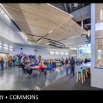 The Valley Pathways is a 7-12 school for learners with unique abilities and circumstances that are not being met in more traditional settings. Creating an environment that easily adapts to the necessarily varied teaching strategies was paramount to meeting student’s varied needs. The academic wing organizes classrooms around shared lab spaces, making specialized spaces accessible to all grade levels. ‘L’ shaped classrooms provide opportunities for varied teaching/learning settings with shared break out spaces. Informal learning happens in circulation spaces, nooks and the main gathering spaces. Because of their reliance on technology for delivering course content the traditional media center was transformed into a multi-media presentation room, a showpiece for of academic achievement connected to the commons.